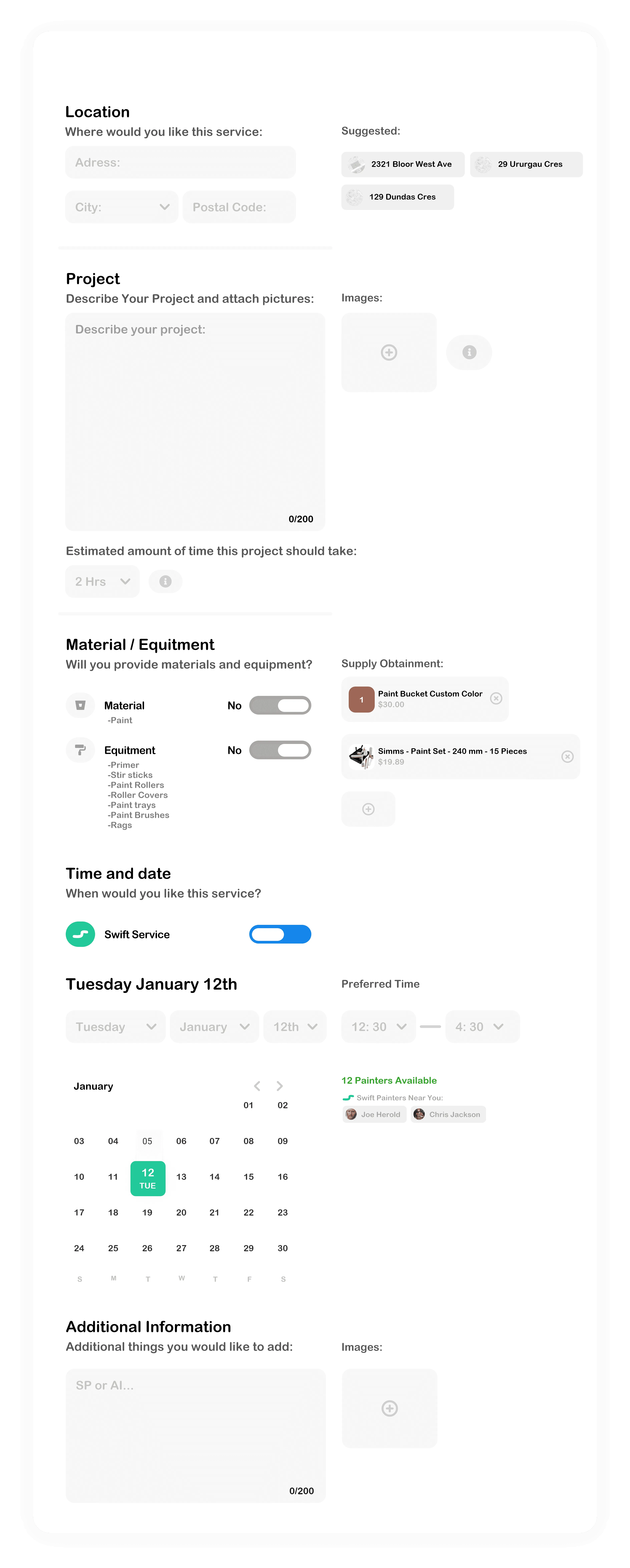 Fill out a simple form with details like location, time, and specific information needed for the servicer.